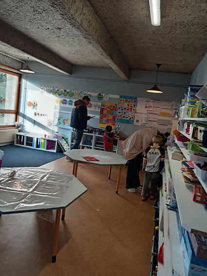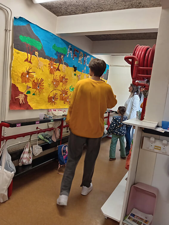 After 7 weeks of work, the parents were invited to go and admire their children’s artwork which was displayed in the classrooms and the hall in the nursery school in OMBROSA Savoie.