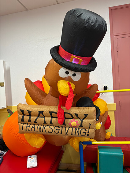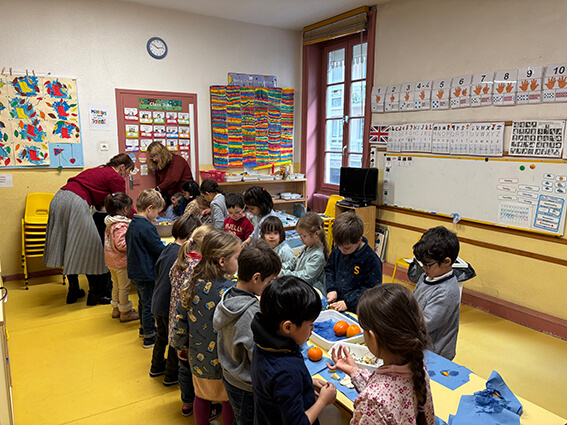 Share this page The “Grandes Section” celebrated Thanksgiving ! They baked some delicious apple tarts and made a huge fruit salad. Everybody enjoyed themselves.