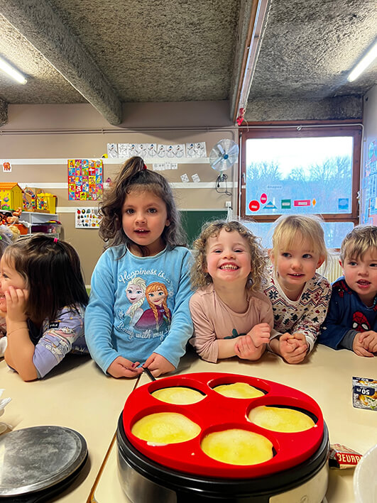 After doing a bit of PE in the morning, everyone enjoyed being comfy while listening to soothing music and bedtime stories. It was also the opportunity to share pancakes at breaktime.