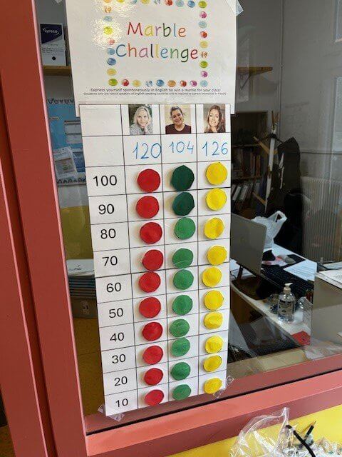 The class that collected the most marbles won the challenge.