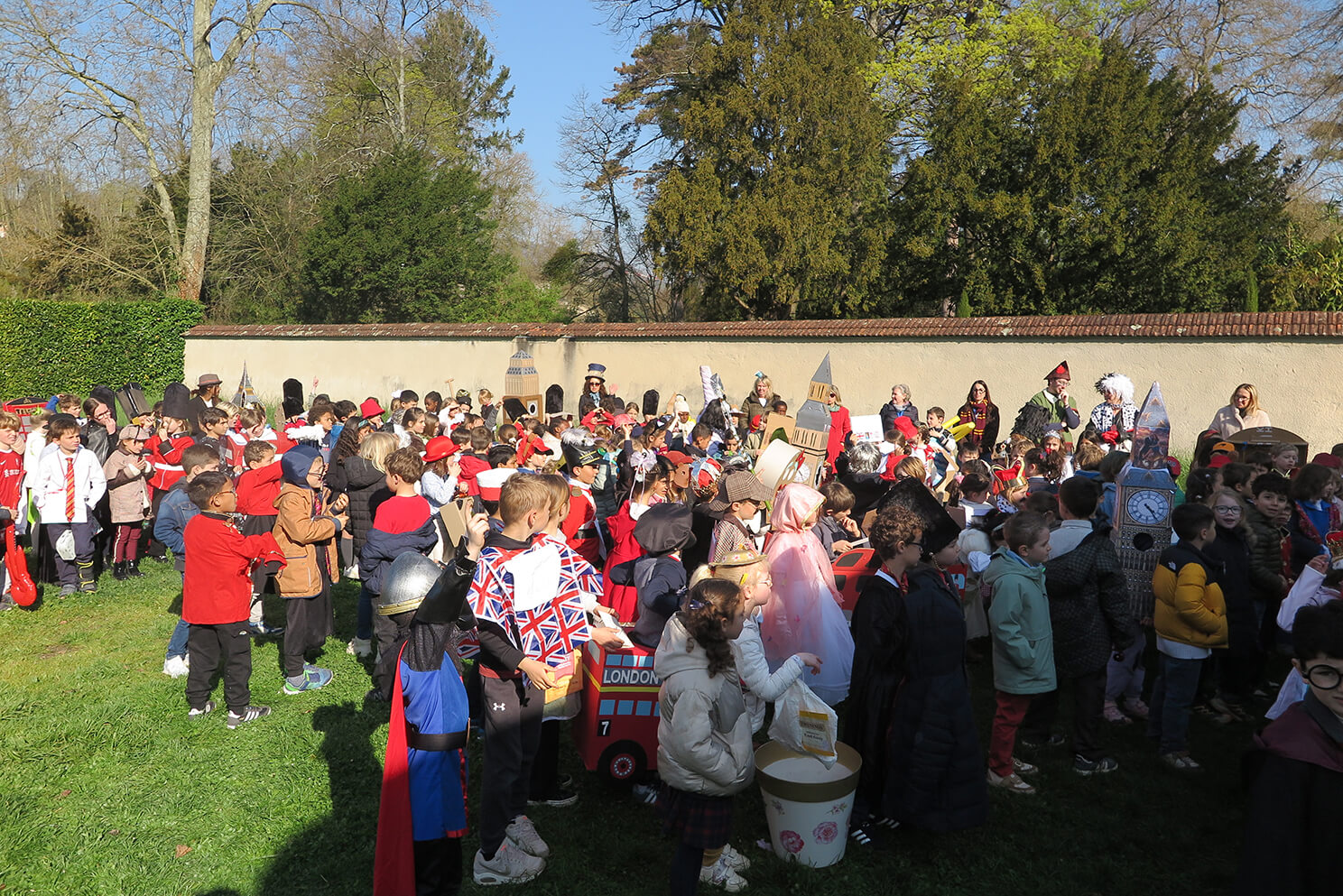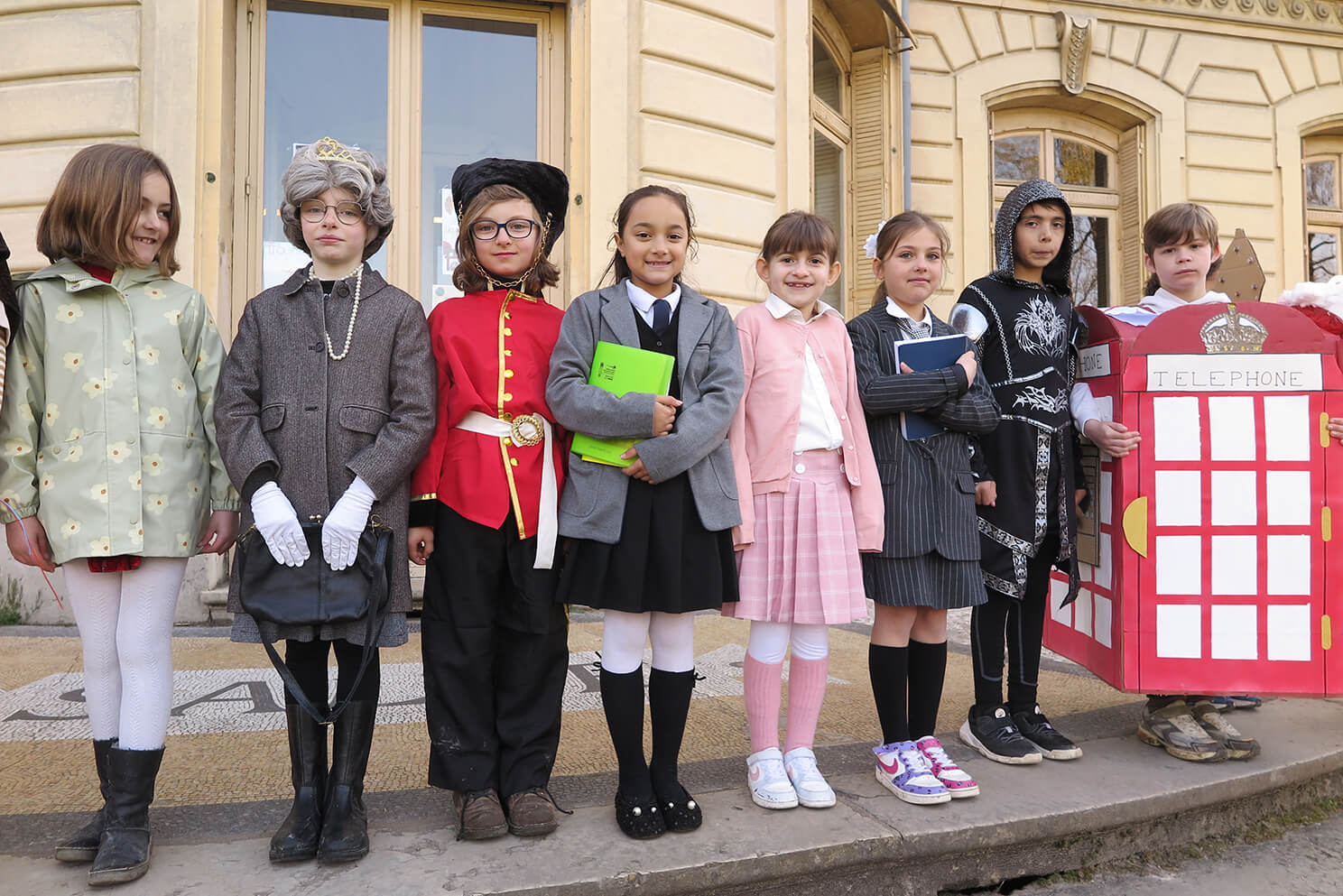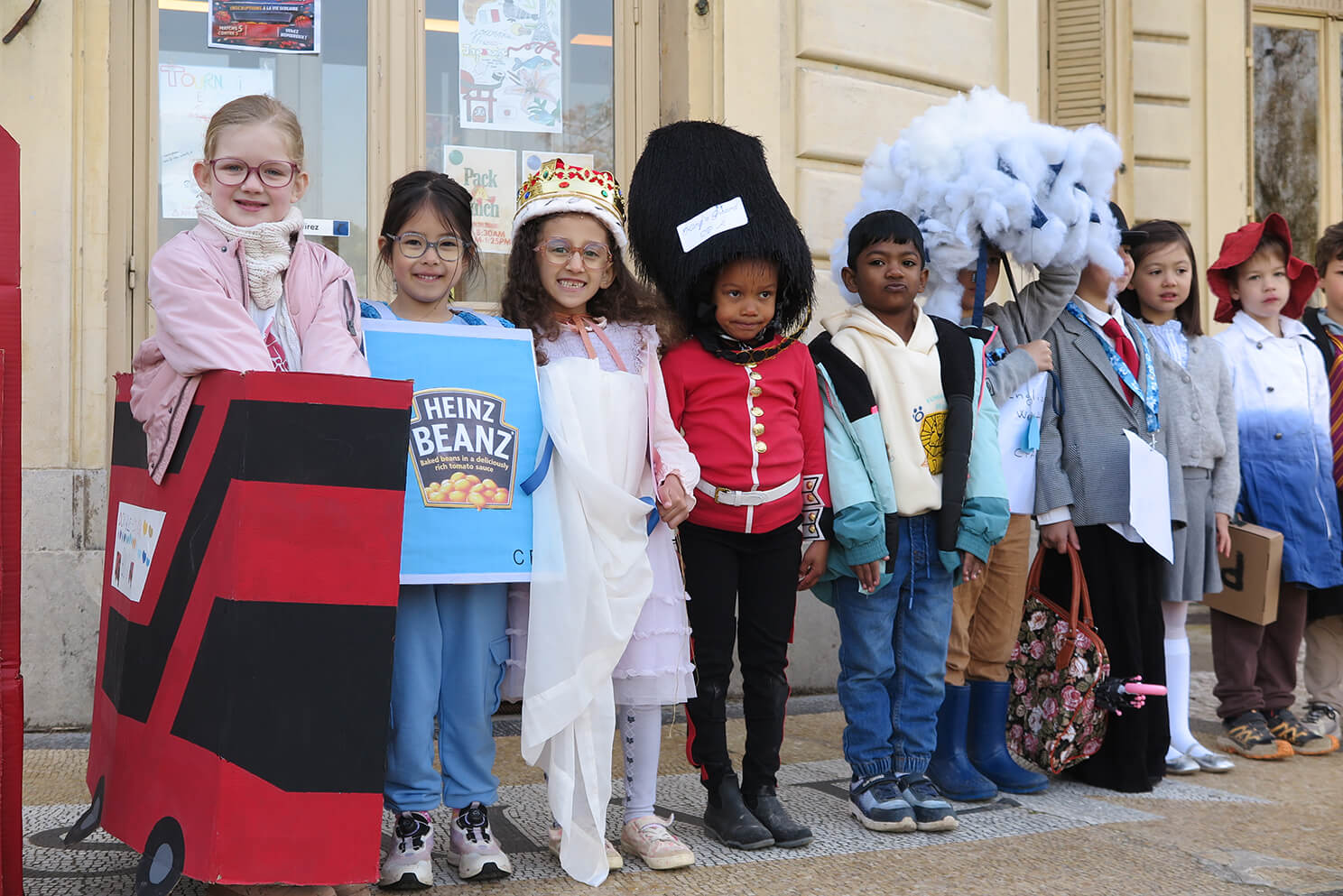 March 20th, was a day of celebration at Ombrosa, bringing together the children and staff of Cycle 2 to celebrate all things “English”. The children and their families rose to the challenge of creating homemade costumes and what a result! So much time, energy and commitment had gone into the vast array of costumes, with everything from English weather, to post boxes, telephone boxes, tea bags and baked beans, red buses, royal family members and their bearskin wearing guardsmen, then Paddington Bear, punk rockers, Mr. Bean and Freddie Mercury! Such creativity!