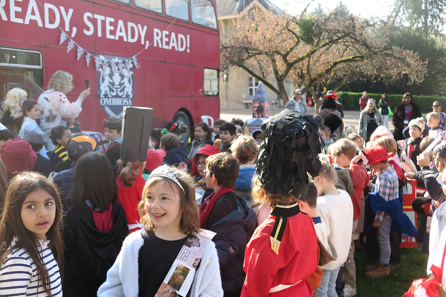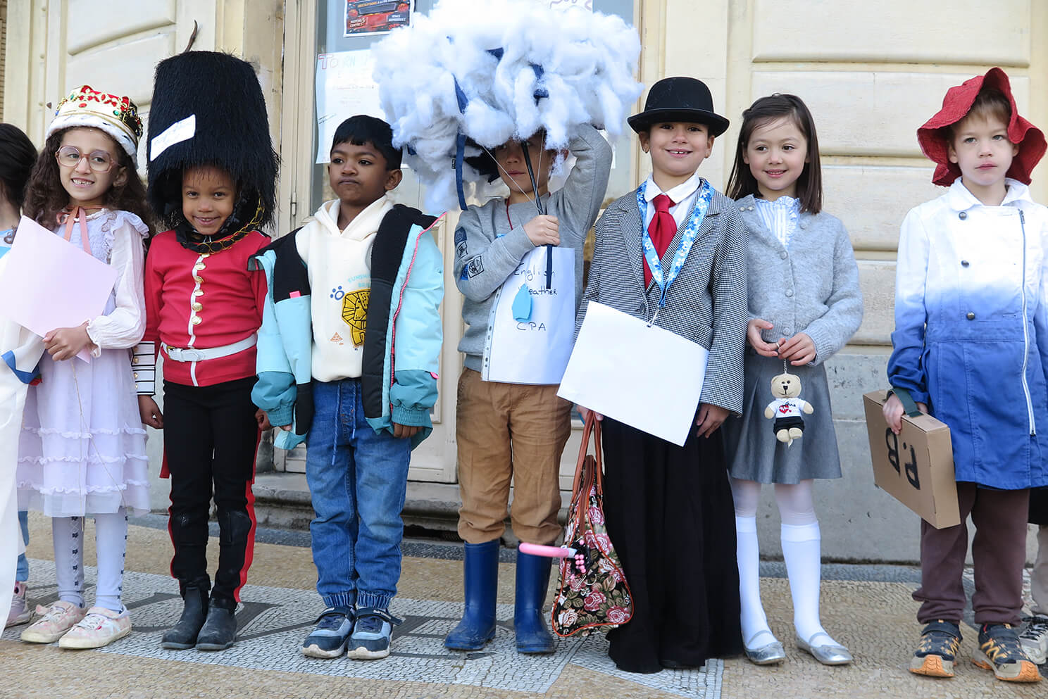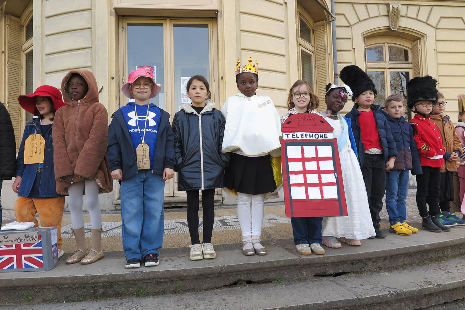 March 20th, was a day of celebration at Ombrosa, bringing together the children and staff of Cycle 2 to celebrate all things “English”. The children and their families rose to the challenge of creating homemade costumes and what a result! So much time, energy and commitment had gone into the vast array of costumes, with everything from English weather, to post boxes, telephone boxes, tea bags and baked beans, red buses, royal family members and their bearskin wearing guardsmen, then Paddington Bear, punk rockers, Mr. Bean and Freddie Mercury! Such creativity!